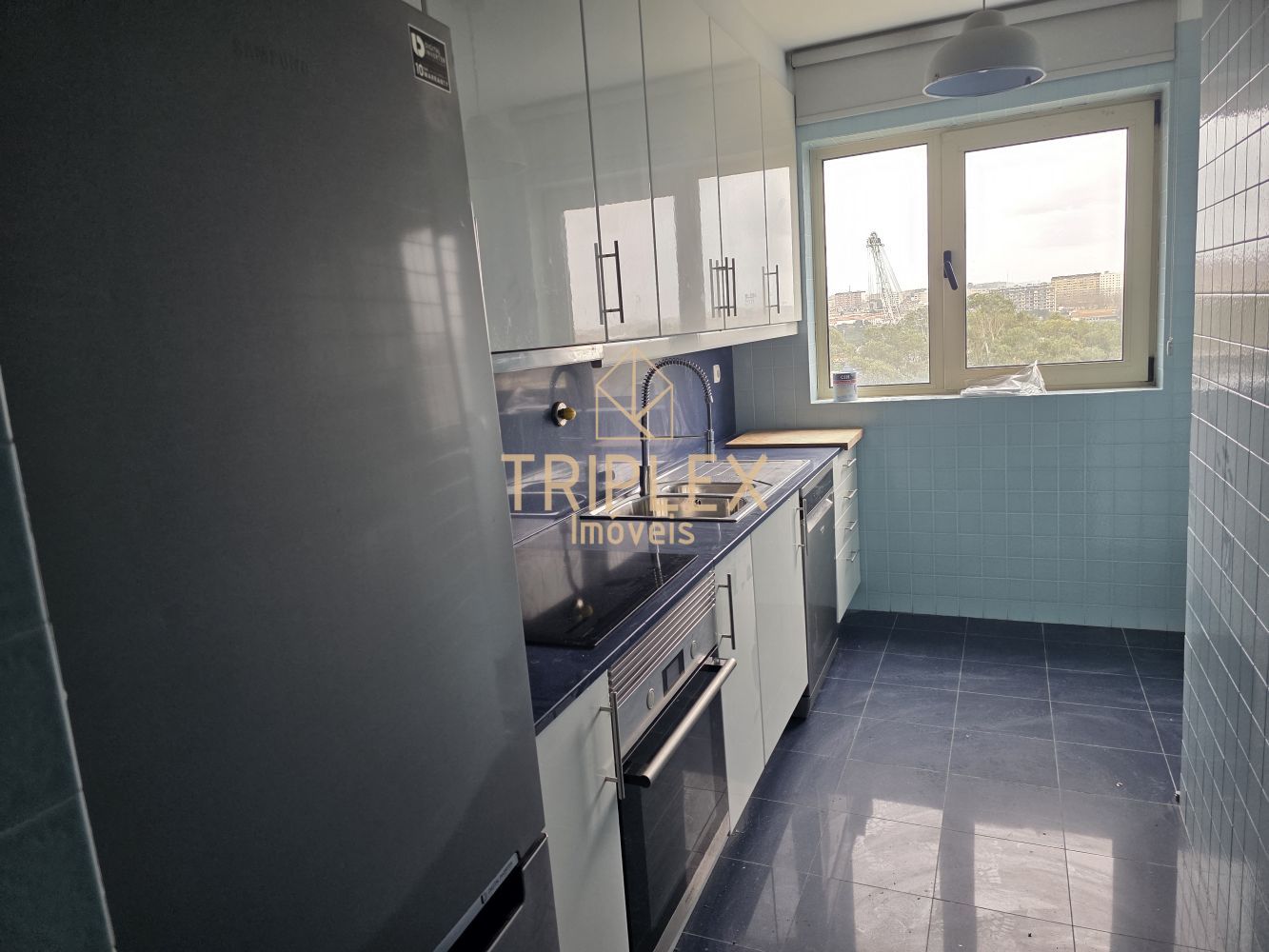 Cozinha equipada com placa, forno e combinado