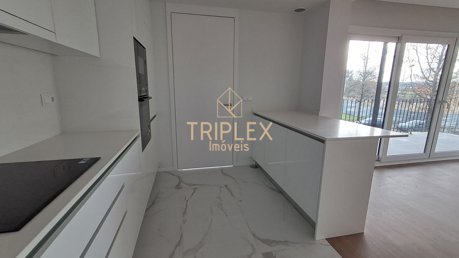 Cozinha equipada com eletrodomésticos (placa + forno + micro-ondas + frigorifico combinado + exaustor + máquina de lavar loiça),
